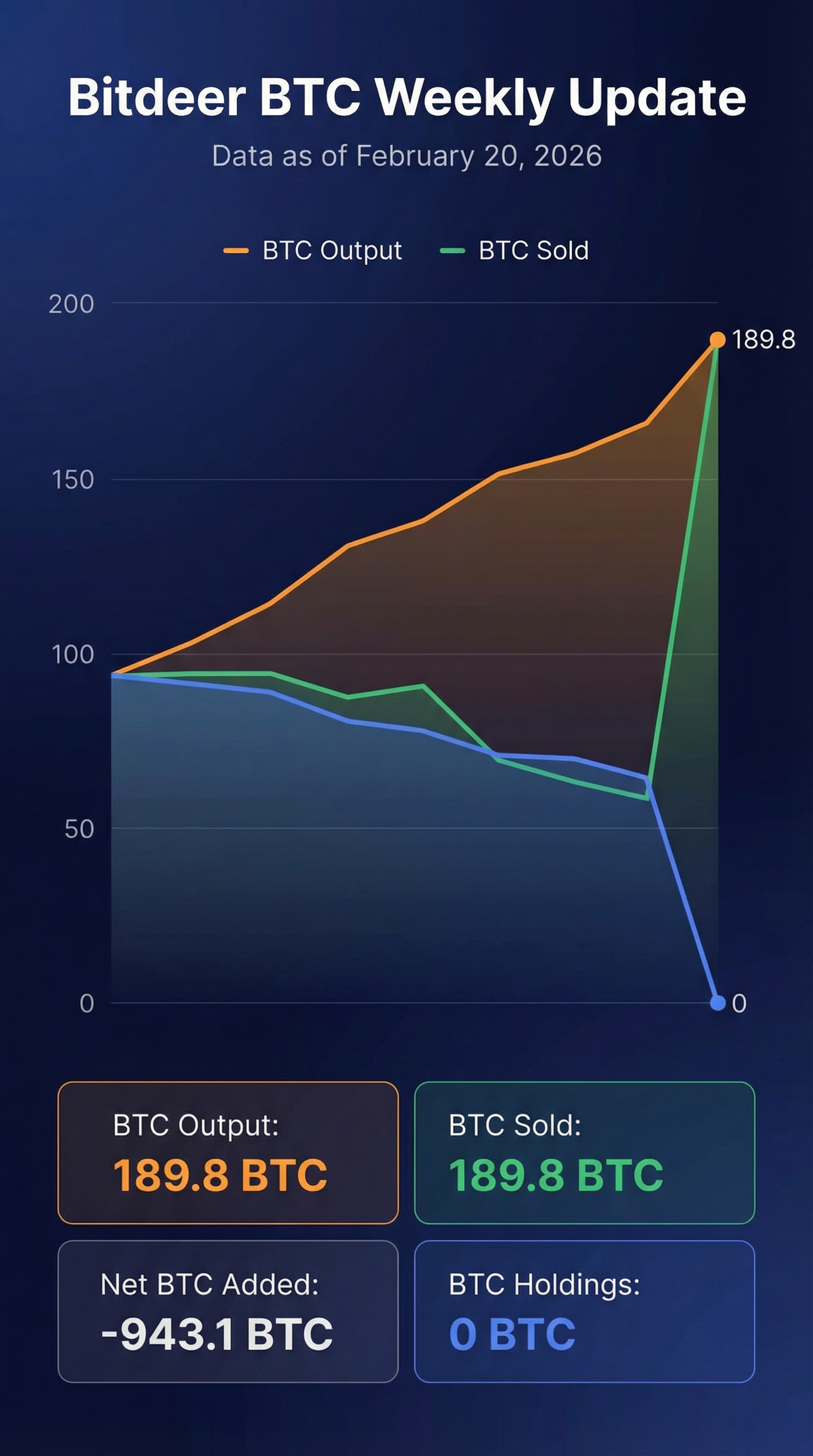비트디어(Bitdeer)는 2월 21일 주간 보고서에서 "채굴하거나 보유한 모든 비트코인을 매도했다"라고 발표했습니다. 매도량은 943.1 BTC(약 927억 원, 당시 $64M 규모)로, 이 중 189.8 BTC는 최근 채굴분입니다. 고객 예치분 제외 대차대조표상 보유량이 0으로 떨어졌습니다.